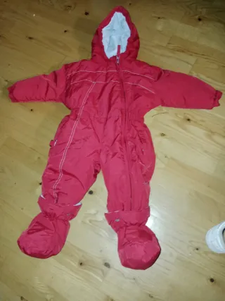 Traje de nieve rojo para bebé, ideal para mantener a los más pequeños abrigados en invierno. Para ir a la nieve talla 12 meses - Diseño con capucha. - Cremallera frontal. - Pies cubiertos.
