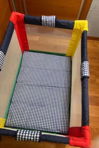 Práctica cuna de viaje plegable, ideal para llevar a todas partes. Su diseño colorido la hace muy atractiva. Sirve también como Parque de juegos - Estructura de metal y tela. - Laterales de malla transpirable. - Ruedas para facilitar el desplazamiento. - Plegable para un fácil almacenamiento.