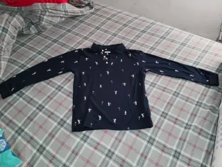 Suéter de manga larga con un divertido estampado de golfistas y banderas. - Color azul marino. - Cuello tipo polo. - Manga larga.