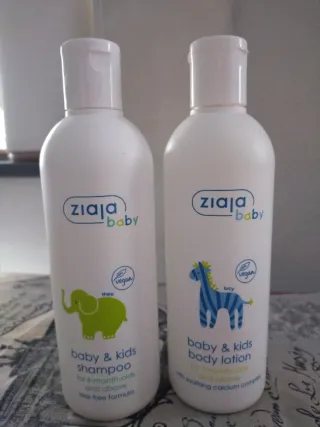 Set de champú y loción corporal Ziaja Baby. - Champú para bebés y niños/as a partir de 6 meses. - Loción corporal para bebés y niños/as a partir de 1 mes. - Fórmula de champú sin lágrimas. - Loción con complejo de calcio calmante. - Certificación vegana.