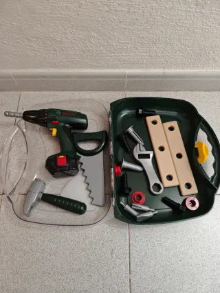 Maletín de herramientas de juguete de la marca Bosch. - Incluye taladro, sierra y otros accesorios. - Diseño tipo maletín para fácil transporte. - Marca: Bosch Mini. - Modelo: Big-DIY-Case.
