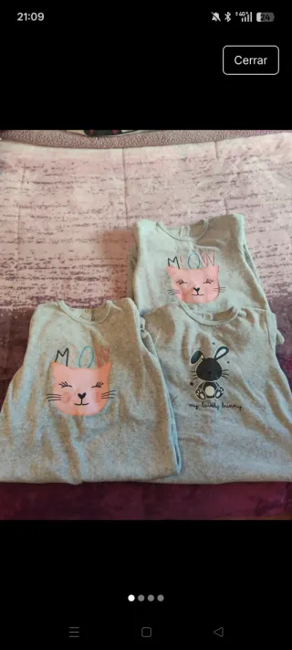 4 petos de Carrefour TEX. Talla 9 meses aunque tallan algo pequeños. Muy fresquitos para verano/vacaciones. Se han usado poquísimo, están como nuevos