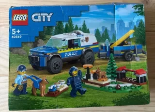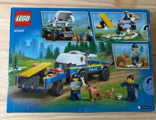 Set de construcción Lego City 60369. - Incluye vehículo policial y remolque. - Figuras de policías y perros. - Accesorios para juego.