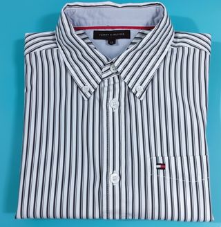Camisa de manga larga de la marca Tommy Hilfiger con un diseño de rayas verticales en blanco y azul. - Cuello camisero. - Cierre de botones. - Bolsillo en el pecho con el logo de la marca. Tiene una puesta Más artículos en mi perfil***