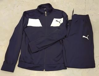 Conjunto deportivo de chándal de la marca Puma. - Chaqueta azul con detalles blancos y logo Puma. - Pantalón azul a juego con logo Puma. Talla 11-12 años (152 cm). La chaqueta está prácticamente nueva, el pantalón con algo más de roce pero muy bien conservado. Más artículos en mi perfil***