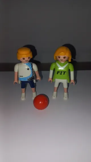 Conjunto de figuras Playmobil con una pelota. Familia con ropa deportiva. - Tres figuras de Playmobil, dos adultos y una niña. Todos con pelo rubio. - Una pelota roja de baloncesto. En el perfil hay mas figuras playmobil para hacer tus propios lotes y ahorrar en el envío. Se escuchan ofertas.