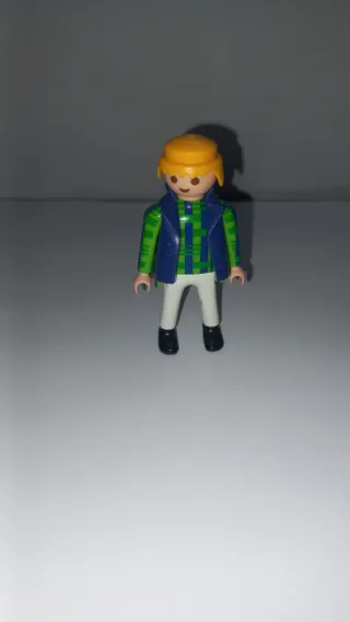 Figura de Playmobil con camisa de cuadros. - Camisa de cuadros verde y azul. - Chaleco azul. - Pantalones blancos. - Zapatos negros. - Pelo rubio. En el perfil hay mas figuras playmobil para hacer tus propios lotes y ahorrar en el envío. Se escuchan ofertas.