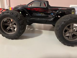 Set de dos coches tipo monster truck de juguete. - Coche amarillo con diseño de tigre. - Coche azul tipo camión. - Ruedas grandes todoterreno.