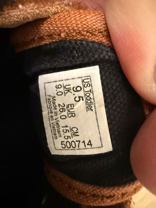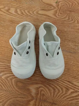Par de zapatillas infantiles. - Cierre de cordones. - Suela de goma. Talla 25