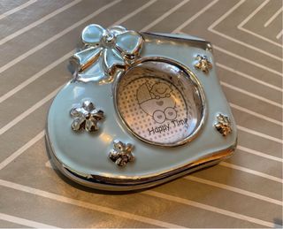 Colchoneta cambiador para bebé con un diseño de estrellas. - Laterales acolchados. - Funda impermeable. - Fácil de limpiar. La colchoneta está impecable, como se ve en las fotos. La media funda de tela de toalla tiene algun enganchón pero esta bien