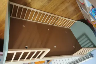 Estructura de cama estilo Montessori, ideal para fomentar la autonomía. Medida 70x140. Solo un año de uso. Si necesitas colchón y sábanas, se venden en otro anuncio de mi perfil. - Fabricada en madera natural. - Diseño bajo y seguro. - Laterales con barrotes.