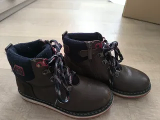 Botas de piel para niño/a de la marca Mayoral en talla 30. Muy calentitas y perfectas para el día a día. - Cierre con cremallera. - También llevan cordones. - Detalle de logo en el lateral. - Interior forrado. En su caja original.