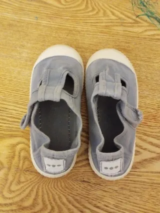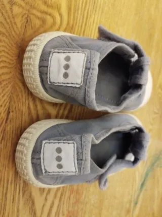 Zapatillas de lona para niño en color azul. - Cierre de velcro. - Suela de goma. - Detalle de tres puntos en la parte trasera. Talla 25