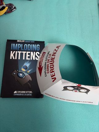 Se vende la caja y el cono de la expansión Imploding Kittens. - Incluye la caja del juego. - Incluye el cono de la vergüenza. - No incluye las cartas del juego.