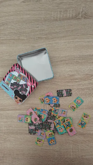 Juego de dominó con temática de LOL Surprise. Incluye una lata metálica para guardarlo. 28 fichas. - Diseño divertido con personajes de LOL Surprise. - Ideal para niños y niñas.