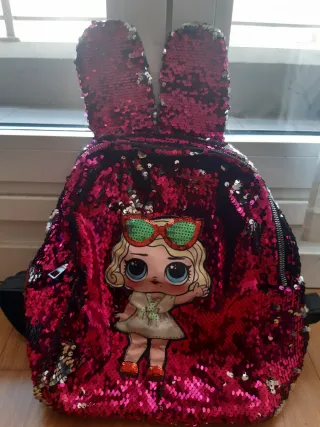 Mochila infantil con un divertido diseño de lentejuelas reversibles. - Lentejuelas brillantes en color fucsia y plateado. - Adorable personaje de LOL Surprise en el frontal. - Orejas de conejo en la parte superior.