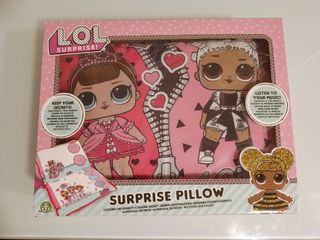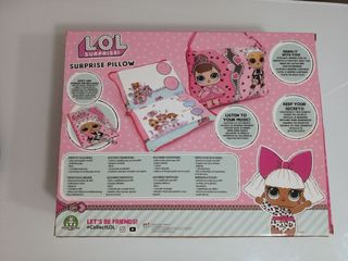 L.O.L Surprise Cojín Secreto. Una almohada LOL Surprise en la que podrá esconder todos sus secretos Incluye: 8 páginas para escribir 1 diario 1 rotulador especial cable y altavoz para MP3 1 carpeta transparente 1 asa ajustable 1 candado y llaves para guardar sus secretos Marca Giochi Preziosi Adecuado para viajes o como accesorio en el dormitorio Esconde tus secretos en el fantástico cojín de LOL Surprise Color rosa Dimensiones: 10.5 Alto x 27.5 Ancho x 35.5 Largo (CM) Peso: 0.8 (KG) Sin Estrenar. Con caja y embalaje original Envíos a través de wallapop Bolso para coleccionistas de artículos LOL Surprise colección coleccionable