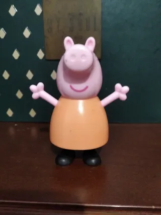 Figura de Peppa Pig con su característico vestido naranja. - Muñeco de plástico. - Color principal: rosa y naranja. - Ideal para coleccionar o jugar.