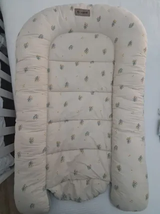 Cojín nido de la marca Jané con un bonito estampado floral. - Diseño acolchado. - Tonos neutros y suaves. - Borde elevado para mayor seguridad.
