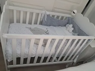 Cuna de la marca Micuna en color blanco incluye colchon viscoelastico+ sabanas + chichonera . Un espacio seguro y acogedor para el bebé. - Diseño clásico y elegante. - Barandillas de seguridad. - Ruedas para facilitar el movimiento.