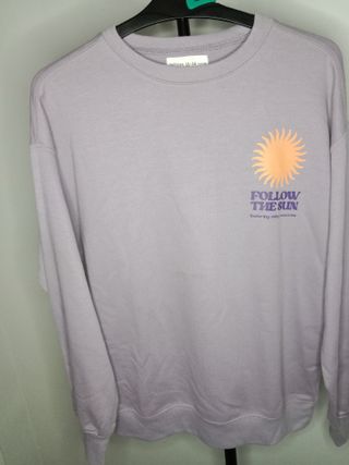 Sudadera infantil de Lefties en talla 13-14. Presenta un diseño con un sol y la frase Follow the Sun. - Color lila. - Manga larga. - Cuello redondo.
