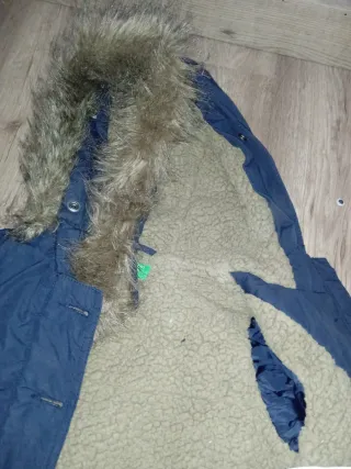 Chaquetón para niño con capucha y forro interior. - Color azul marino. - Cierre de cremallera y botones. - Bolsillos frontales. - Detalle de pelo en la capucha. -Talla xs, corresponde 4-5años