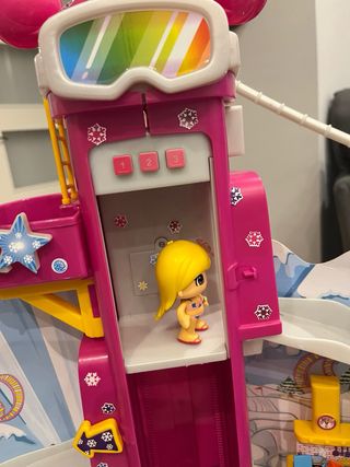 Fantástica casa de muñecas de varios pisos, ideal para horas de juego. - Incluye piscina con tobogán. - Múltiples habitaciones y accesorios. - Diseño colorido y detallado.