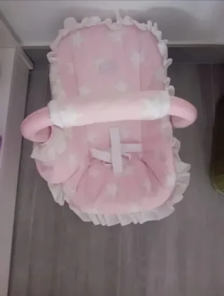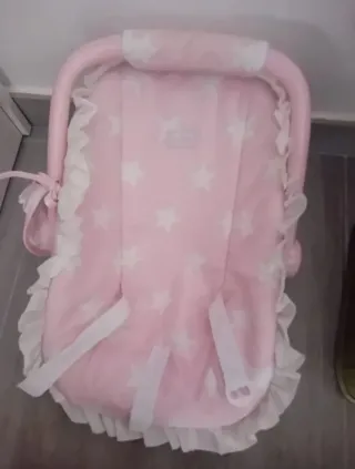 Moisés de la marca La Nina con un bonito diseño. - Color rosa. - Estampado de estrellas blancas. - Incluye asas para facilitar su transporte.