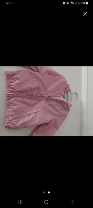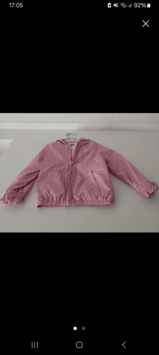Cortavientos de la marca Benetton en color rosa, talla 12-18 meses. - Diseño con capucha. - Cierre de cremallera. - Detalle de volantes en la parte delantera y en los puños. - Cintura y puños elásticos.