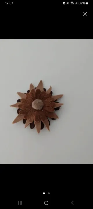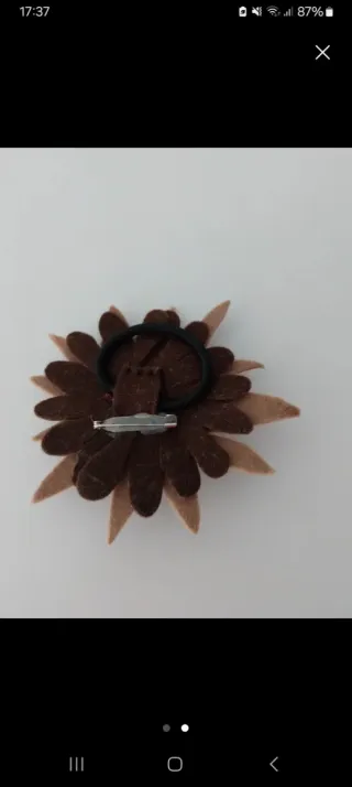 Precioso pasador-coletero hecho a mano para niñas, en tonos marrones. - Diseño floral. - Materiales textiles.