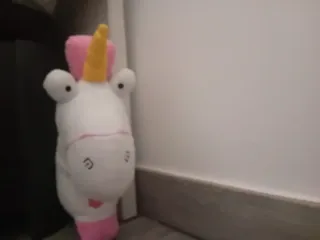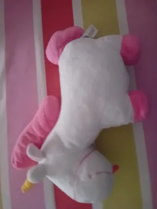 Adorable peluche de unicornio con detalles en rosa. Perfecto para decorar o para abrazar. - Material suave y tierno. - Diseño de unicornio con alas. - Cuerno amarillo.