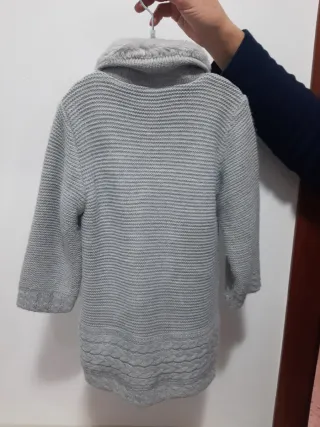 Abrigo de punto gris para bebé, ideal para los meses más fríos. - Cuello con pelo sintético. - Cierre con botones. - Diseño trenzado. - Puños y bajo con detalle trenzado.