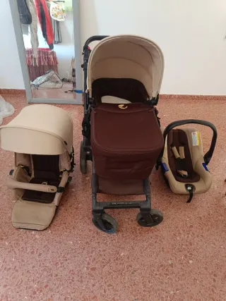 Conjunto de cochecito Jané Muum de 3 piezas. - Incluye silla de paseo. - Incluye capazo. - Incluye silla de coche. - Capota ajustable. - Cesta de gran capacidad. - Incluye bolso y capota para lluvia. - Ruedas todoterreno. - Manillar ajustable.