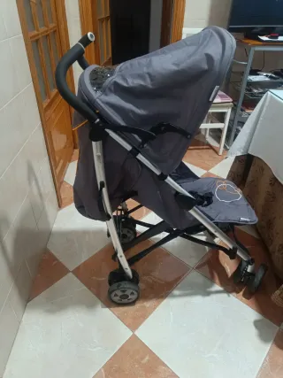 Cochecito para bebé, práctico y fácil de manejar. - Diseño ligero. - Plegado sencillo. - Color gris con detalles naranjas. - Cesta inferior de almacenamiento. - Ruedas delanteras giratorias.
