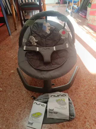 Hamaca Nuna Leaf en color gris. Incluye la barra de juguetes. - Diseño moderno y elegante. - Tejido suave y confortable. - Incluye instrucciones y bolsa de transporte para la barra de juguetes.