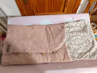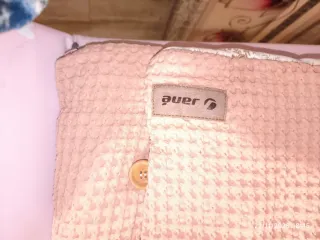 Saco para capazo de bebé en color rosa, con un diseño de gofre y detalles de botones de madera. Incluye una etiqueta de la marca Jane. - Tejido exterior de gofre. - Cierre con botones de madera. - Estampado floral en la parte superior. 2 meses de uso, en muy buen estado