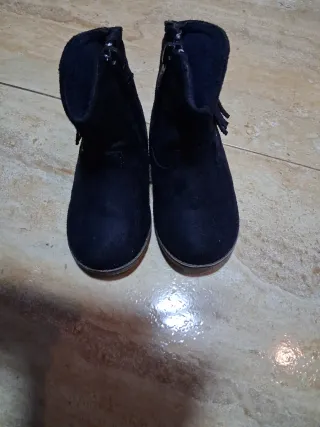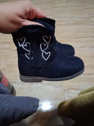 Bonitas botas para niña en color azul.marino oscuro talla 21. Tienen un diseño con corazones bordados en blanco y detalles de flecos. - Color: azul oscuro - Talla: 21 - Diseño: Corazones bordados y flecos