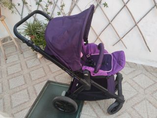 Carro Jané Muum Trío en color morado. - Incluye capota. - Arnés de seguridad de 5 puntos. - Reductor para recién nacidos. - Bolso de carro compañero sin uso. - Portachupete. - Cambiador compañero sin uso. - Instrucciones Mejor ver en persona.