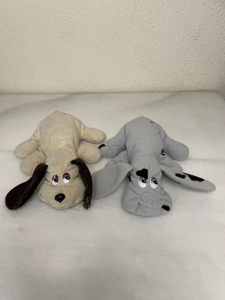 Lote de dos peluches originales de Pound Puppies de los años 80. Son dos adorables cachorros. - Peluche de perro color beige. - Peluche de perro color gris, le falta la nariz - Diseño clásico de los años 80.