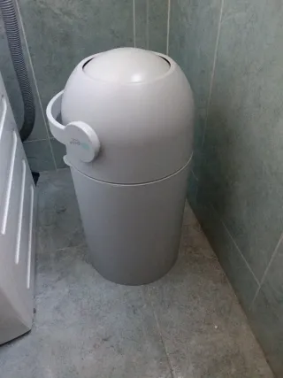 Papelera diseñada para desechar pañales de forma higiénica. Su diseño es práctico y discreto. - Color gris claro. - Tapa abatible. #bbest#bebe#pañales#