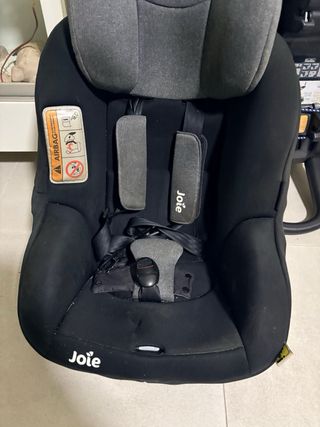 Silla de coche de la marca Joie, diseñada para la seguridad y comodidad. - Tapicería en color gris y negro. - Sistema de arnés de seguridad. - Reposacabezas ajustable.