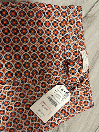 Pantalón de vestir para niña con un bonito estampado geométrico en tonos naranjas y azules. Se encuentra en muy buen estado. - Marca: Zara Girls - Talla: 4-5 años (110 cm) - Referencia: 1103/713/632 - Precio original: €22.95