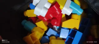 Set de piezas de construcción de bloques grandes, ideales para crear estructuras. - Piezas de colores variados: azul, amarillo, rojo y blanco. - Diseñadas para manos pequeñas, fomentando la creatividad.