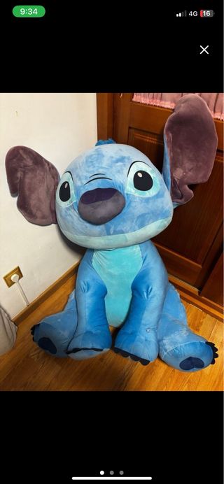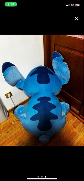 Peluche gigante de Stitch, personaje original de Disney, con un tamaño de 100cm. Este peluche tiene la particularidad de hablar. Comprado en marzo de 2025. - Tamaño XXL: 100cm de altura. - Personaje: Stitch de Disney. - Funcionalidad: Parlante.