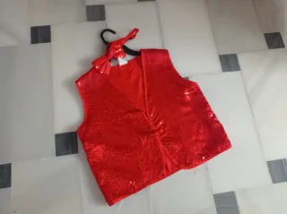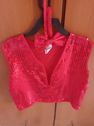 Conjunto de chaleco y pajarita de color rojo para niños. - Chaleco con lentejuelas. - Pajarita a juego.