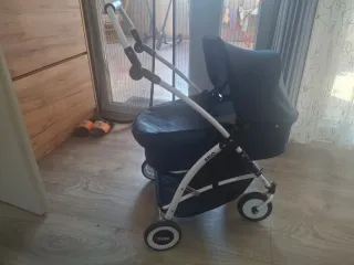 Carro de bebé Jane Muum en color azul, compuesto por dos piezas. - Chasis ligero y plegable. - Capota extra larga con ventilación. - Silla de paseo reversible. - Incluye capazo. - Ruedas todoterreno. - Incluye cobertor para la lluvia. Solo usado por un niño, el colchón del capazo tiene una mancha amarilla.