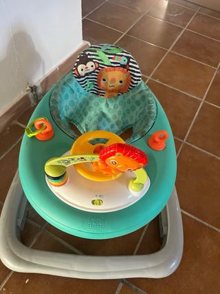 Caminador infantil con diseño divertido y colorido. - Asiento acolchado. - Juguetes interactivos. - Altura ajustable.