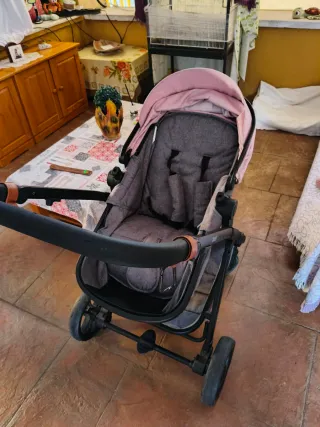 Carro de bebé en color rosa, marca Asalvo. - Capazo amplio y cómodo. - Silla de paseo ergonómica. - Plegado compacto.