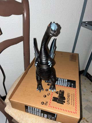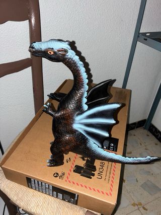 Figura de dragón de plástico con detalles en azul y naranja. - Diseño detallado. - Color principal negro.