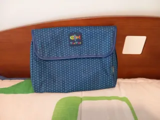 Bolso de maternidad de la marca TucTuc en color azul bebé. Es un bolso espacioso y práctico. - Diseño acolchado con círculos. - Correa ajustable para colgar al hombro. - Asa de mano. - Bolsillo frontal con cierre de botón. - Cierre cremallera. - Varios compartimentos internos.